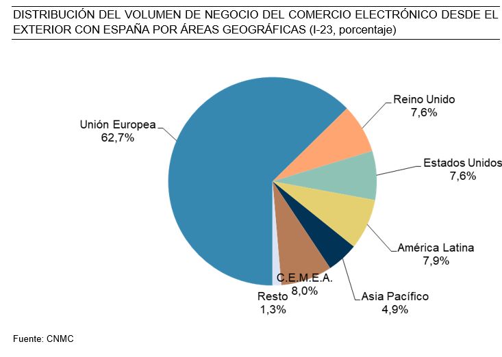 En el caso del número del número de transacciones, otro de los aspectos analizados por el CNMC, se confirma que en el primer trimestre de 2023 se registraron más de 363 millones de transacciones, un 16,1% más que en el mismo período de 2022, con un volumen de negocio, sólo de las transacciones con origen en España y dirigidas hacia el exterior, de 10.803 millones de euros, un 19,7% más que en el primer trimestre del año anterior.