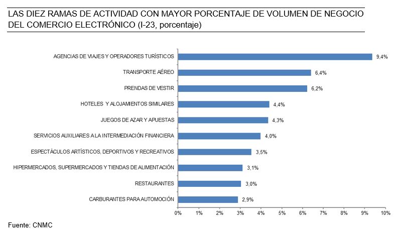El informe, el cual analiza diferentes aspectos de este mercado en particular, asegura que los sectores de actividad con mayores ingresos fueron las agencias de viajes y operadores turísticos, con el 9,4% de la facturación total; el transporte aéreo, con el 6,4% y las prendas de vestir, en tercer lugar, con el 6,2%.