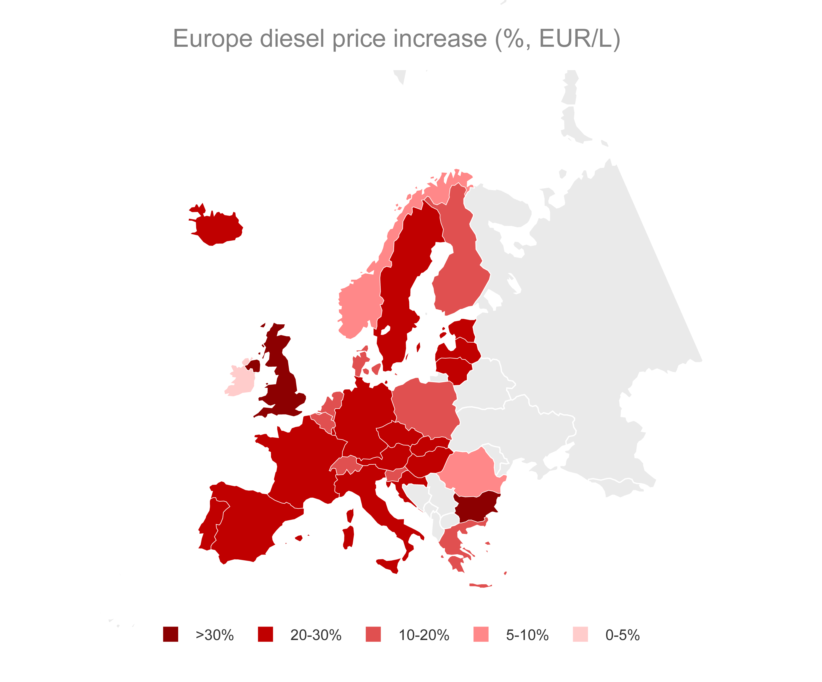 En el Reino Unido , la reducción del impuesto especial de 0,5 libras esterlinas por litro se ha prorrogado hasta el 31 de agosto. El gobierno sigue descartando nuevas medidas fiscales a pesar de las advertencias de los analistas sobre posibles problemas de suministro localizados. El suministro de AdBlue sigue siendo el principal factor de presión. Los precios mundiales de la urea han bajado ligeramente desde el máximo de marzo, pero se mantienen por encima de los 694 dólares estadounidenses por tonelada, lo que supone un aumento del 56 % desde el 27 de febrero.