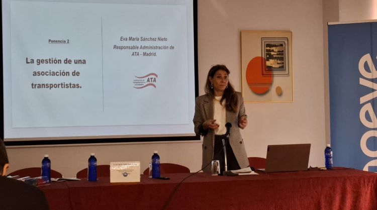 La segunda intervención del debate corrió a cargo de Eva María Sánchez Nieto, responsable de administración de la asociación de transportistas ATA-Madrid, que comenzó hablando sobre su experiencia en el sector, para enfocar el objetivo de su ponencia en la importancia de poner en valor el papel de las mujeres en el transporte, para visibilizar los avances reales y los retos a los que hay que hacer frente para una igualdad real.