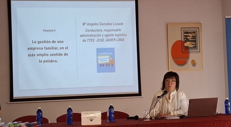 A continuación participó María Ángeles González Losada, conductora, responsable de administración y agente logístico de Transportes José Javier Lima y presidenta de la asociación de transportistas ATRAPARVE de Verín.