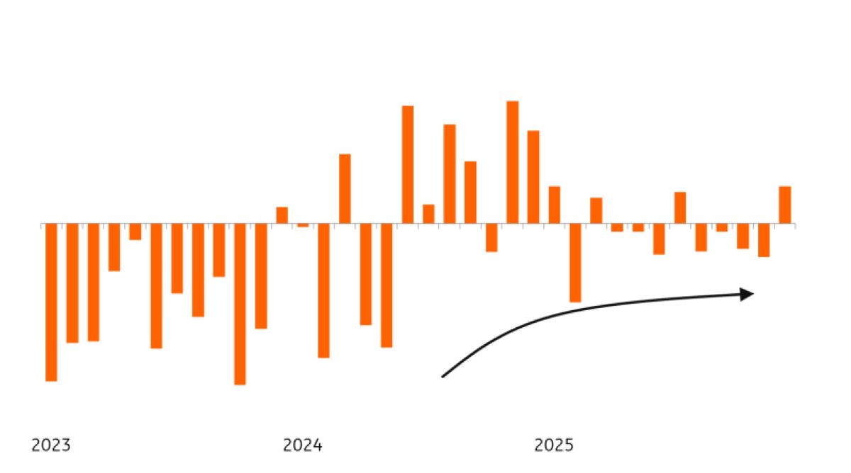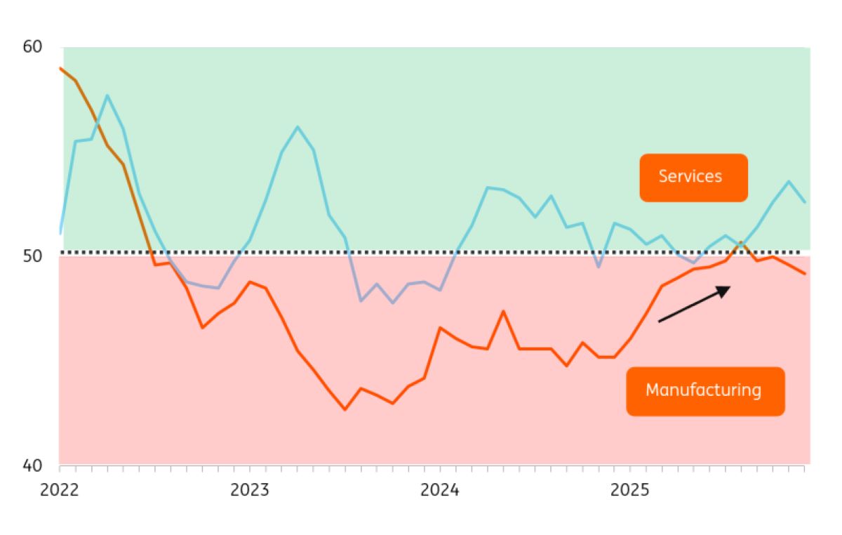 Los bienes industriales representan una gran parte del transporte por carretera. Es posible que los transportistas manufactureros hayan tocado fondo; el Índice de Gerentes de Compras (PMI) superó un profundo punto mínimo a mediados de 2025, pero aún no muestra señales de crecimiento. Las bases para la recuperación siguen siendo frágiles, con las industrias pesadas bajo una presión competitiva persistente, aunque las industrias alimentarias muestran mejores perspectivas.