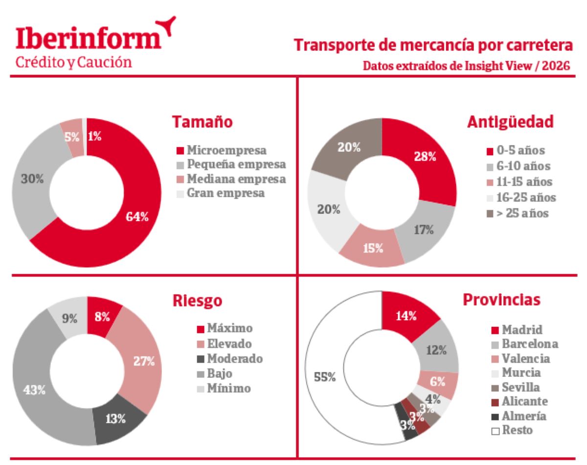 El riesgo de crédito del transporte de mercancías por carretera se ha mantenido estable en el último año. De acuerdo con los datos que ofrece Insight View, el 35% de las empresas del sector presenta un riesgo máximo o elevado de impago, manteniendo el mismo nivel desde 2023.
