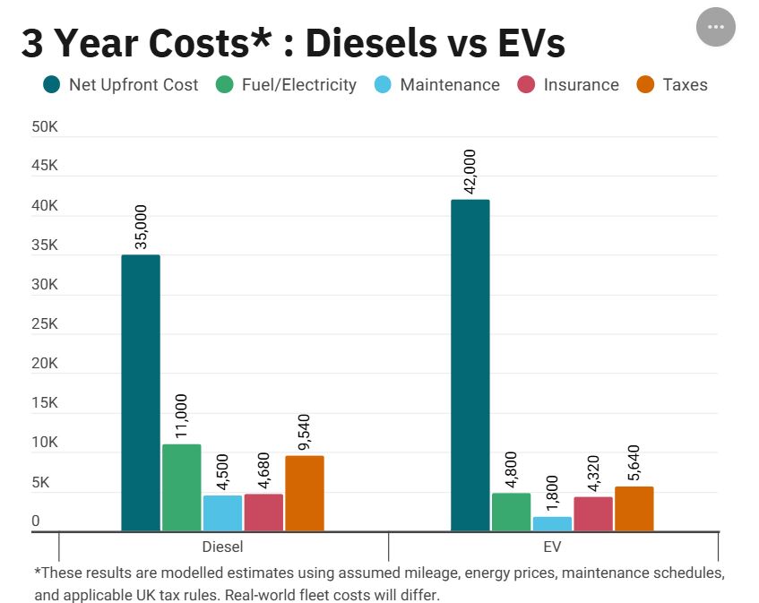 Más allá del VED, los incentivos y reembolsos gubernamentales siguen disponibles para los vehículos eléctricos que cumplen los requisitos. Y en ciudades con zonas de aire limpio, como Londres, Bath, Bristol y Sheffield, los vehículos eléctricos circulan sin problemas sin cargos por congestión ni tasas ULEZ. Para las entregas urbanas de última milla, estas exenciones se traducen en ahorros sustanciales a los que los operadores de gasolina y diésel simplemente no pueden acceder.