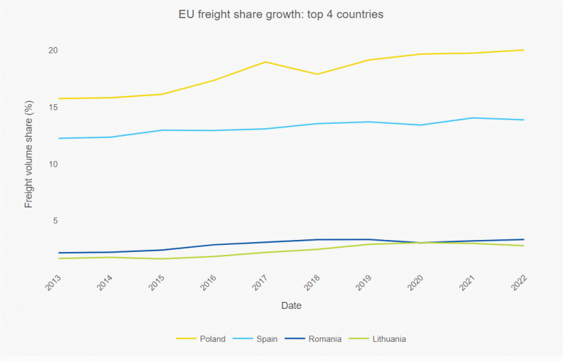 Polonia transporta ahora más mercancías por carretera que cualquier otro país de la UE, habiendo superado a Alemania en 2017.