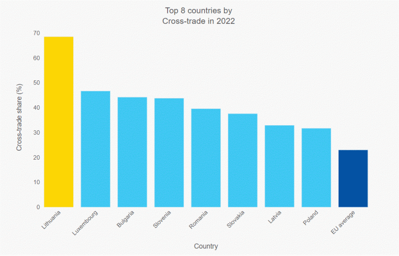 Lituania ha tenido el mayor volumen de transporte por carretera per cápita durante la última década. Los países de la UE con una población de entre dos y tres millones, como Lituania, Eslovenia y Letonia, tienen una elevada proporción del transporte por carretera per cápita.