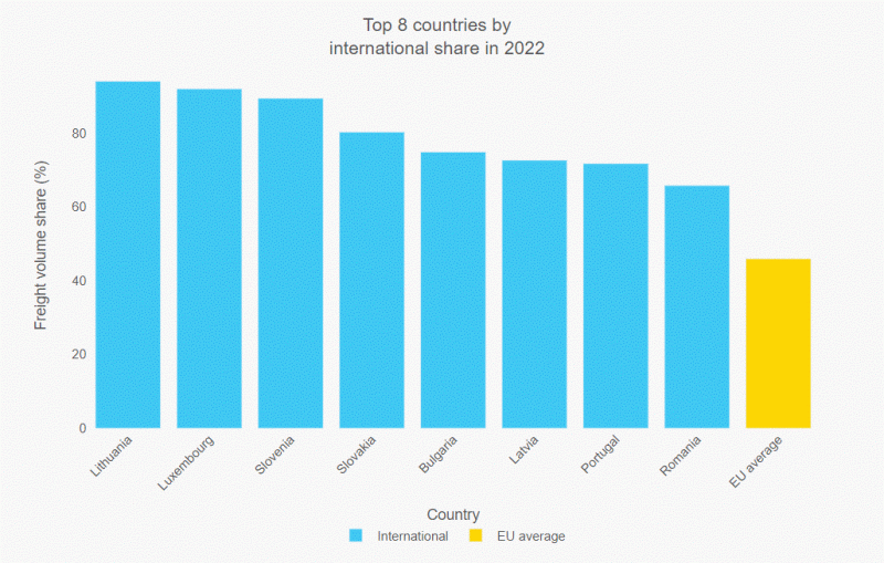 Las operaciones de transporte de mercancías por carretera de la UE son en su mayoría nacionales, tanto hoy como históricamente. Sin embargo, existen algunas variaciones entre los Estados miembros. Algunos países, como Lituania, Luxemburgo y Eslovenia, se caracterizan principalmente por sus operaciones internacionales.