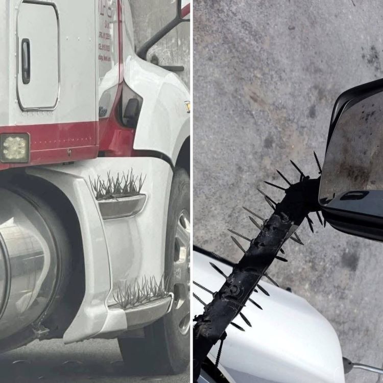 Clavos en los espejos y púas en los peldaños para acceder a la cabina, refuerzos improvisados y caseros en los depósitos de combustible para tratar de evitar robos. No son simples adornos, son auténticos escudos de protección.