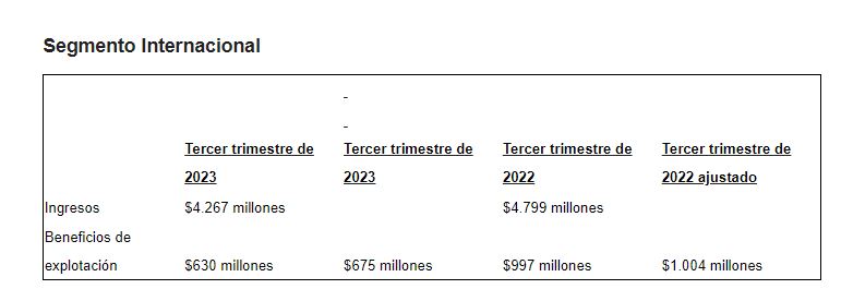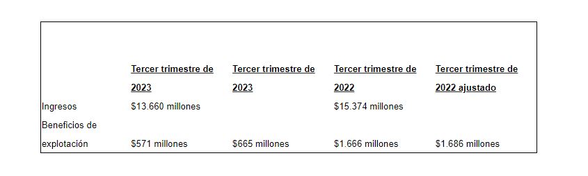 En el tercer trimestre de 2023, los resultados GAAP incluyen un cargo después de impuestos de 219 millones de dólares o 0,26 dólares por acción diluida, compuesto por un pago único de 46 millones de dólares a determinados supervisores a tiempo parcial no sindicados con sede en EE.UU., cargos por transformación y otros cargos de 70 millones de dólares y cargos no monetarios por deterioro del fondo de comercio de 103 millones de dólares.