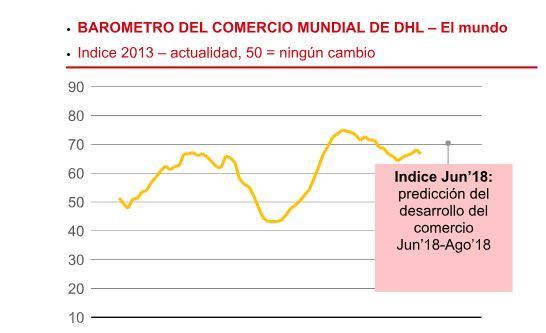 Lanzado en enero de 2018, el Barómetro del Comercio Mundial elaborado por DHL es un nuevo y único indicador temprano para el estado actual y el desarrollo futuro del comercio mundial. Se basa en una gran cantidad de datos de logística, que se evalúan con la ayuda de inteligencia artificial. El indicador ha sido desarrollado en cooperación entre DHL, compañía logística líder del mundo, y el proveedor de servicios de IT Accenture. Se publica cuatro veces al año. La próxima fecha de lanzamiento es el 26 de septiembre de 2018.