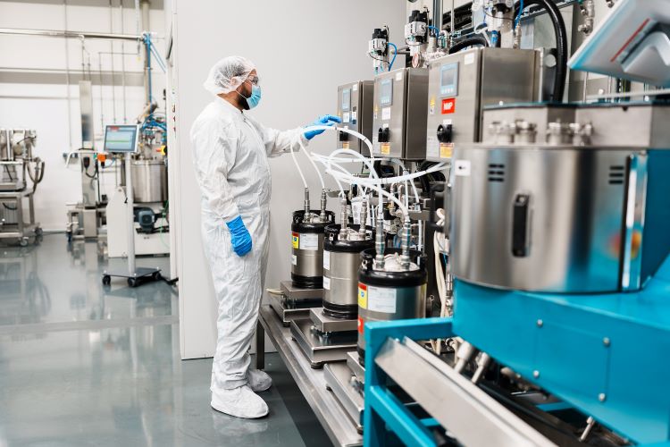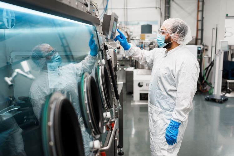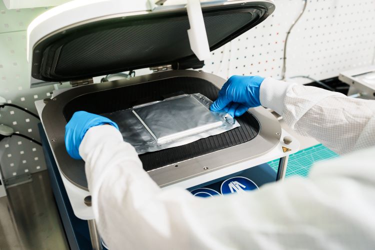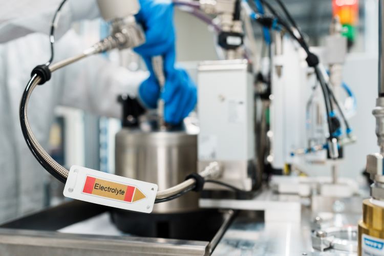 Esta suspensión se utiliza luego para producir prototipos de celdas de batería, la unidad más pequeña de una batería. Cada celda pasa por áreas limpias y secas, ya que es muy importante proteger los materiales sensibles de las partículas de polvo y la humedad durante la producción. En el área de celdas se pueden producir celdas prismáticas y de bolsa, dos tipos diferentes de celdas de batería. El área de celdas se utiliza para desarrollar experiencia en el proceso de fabricación y escalado de unidades.