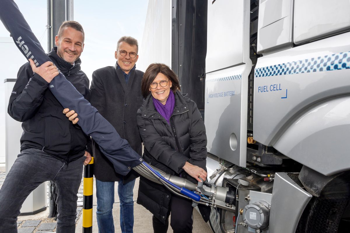 Con el objetivo de establecer un estándar común de reabastecimiento de combustible para camiones propulsados por hidrógeno, la tecnología se pone a disposición de todas las partes interesadas a través de una norma ISO. En presencia de la Secretaria de Estado de Economía de Renania-Palatinado, Petra Dick-Walther, y de medios de comunicación internacionales, Andreas Gorbach, miembro del Consejo de Administración de Daimler Truck, y Juergen Nowicki, director general de Linde Engineering, inauguraron hoy la primera Estación piloto del sLH2 en Wörth am Rhein, repostando combustible a un prototipo de camión Mercedes-Benz GenH2.