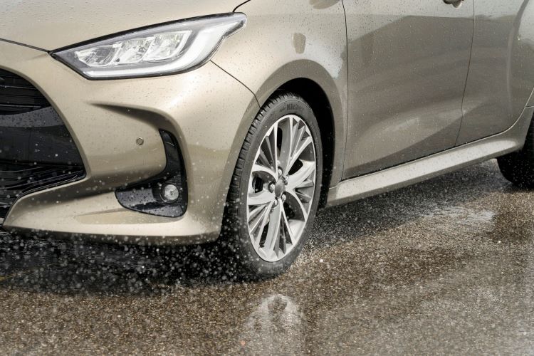 (4) Pruebas realizadas en las pistas de Ladoux en el centro de I+D del grupo Michelin. Frenada sobre suelo mojado. El vehículo utilizado fue un Volkswagen Golf 7 en septiembre de 2024 con el tamaño 225/45R17 94YXL DYN HP5 vs 225/45 R17 94Y XL TL DYNAXER HP4 KL.