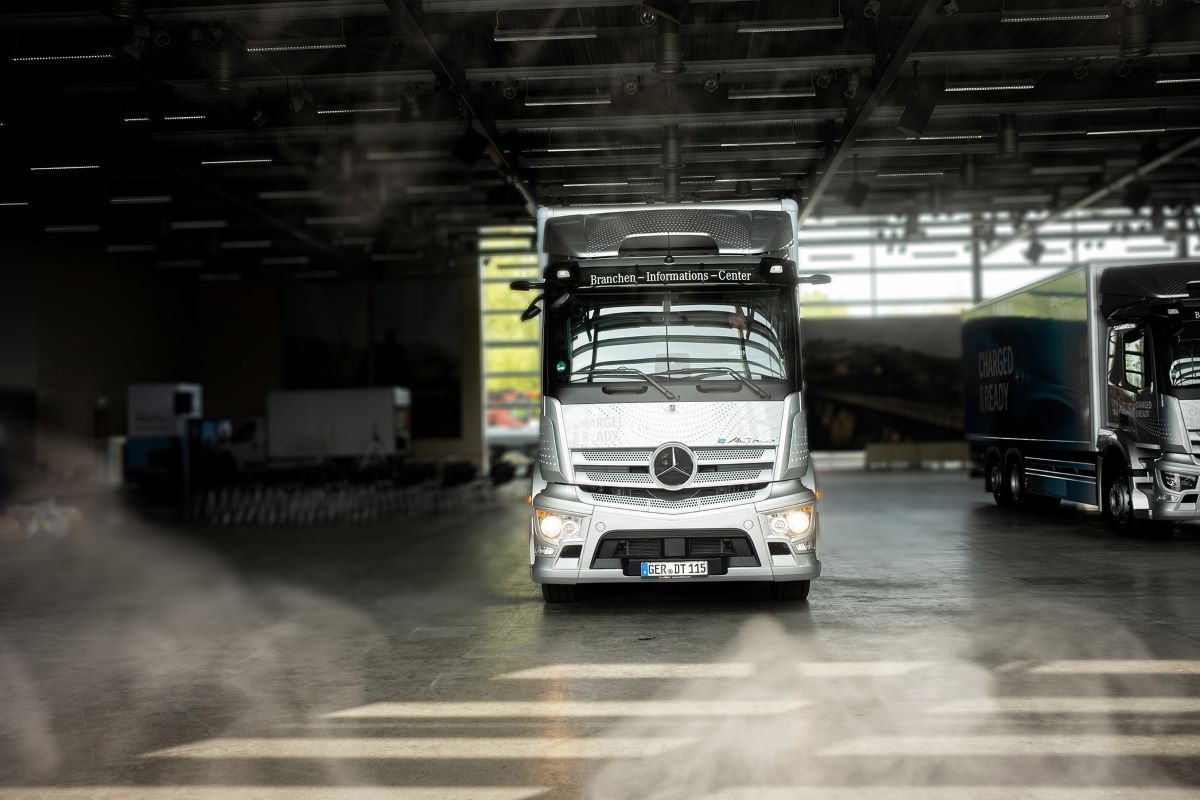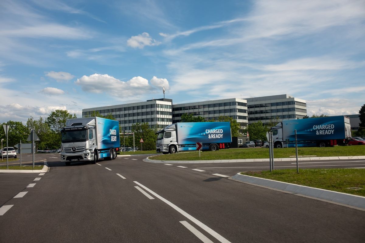 Para el roadshow se utilizarán dos eActros 300 (4×2) y un eActros 400 (6×2). El Mercedes-Benz eActros eléctrico a batería para transporte de distribución pesado ha estado saliendo de la línea de producción en la planta de Wörth desde 2021. Las baterías de los eActros pueden constar de tres (eActros 300) o cuatro paquetes de baterías (eActros 400), cada uno de los cuales tiene una capacidad instalada de 112 kWh. Equipado con cuatro paquetes de baterías, el eActros 400 tiene un alcance de hasta 400 kilómetros. El corazón tecnológico del camión eléctrico es su unidad motriz, que consta de un eje eléctrico rígido con dos motores eléctricos integrados y una transmisión de dos velocidades. Los dos motores refrigerados por líquido ofrecen una potencia continua de 330 kW y una potencia máxima de 400 kW. Además, la energía eléctrica se puede recuperar mediante la recuperación cuando se conduce con previsión.