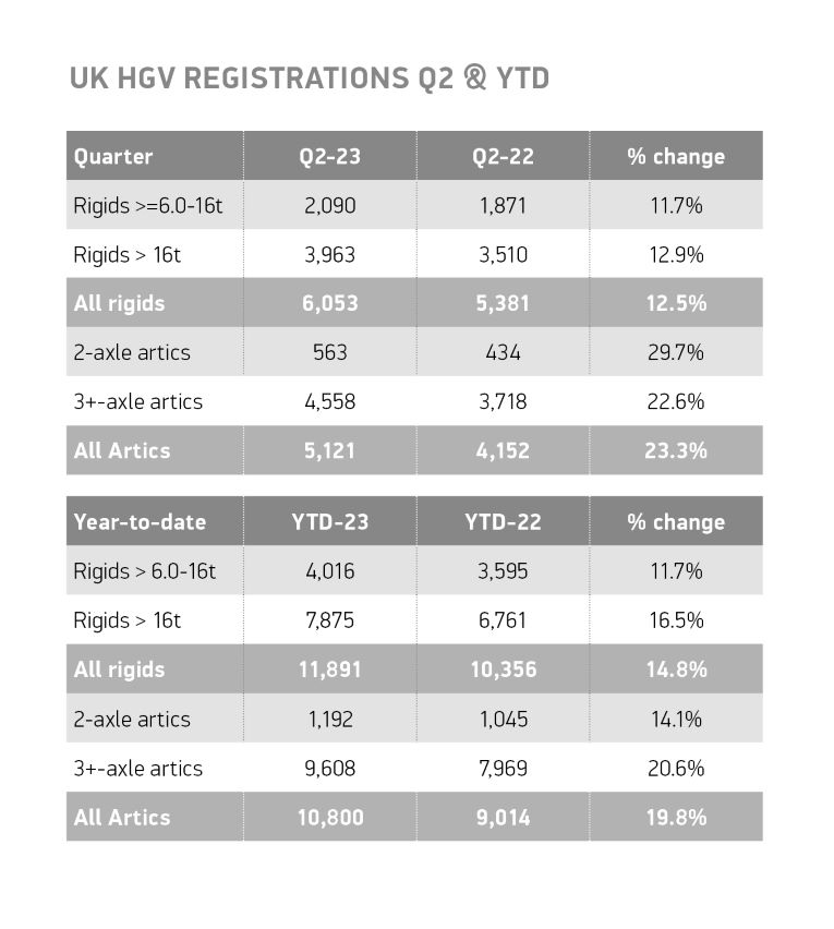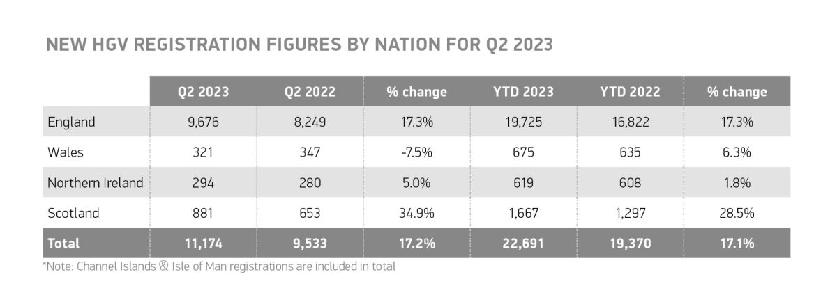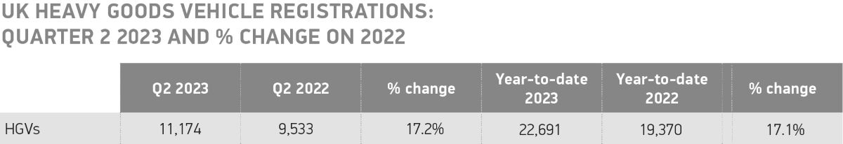 El mercado británico de vehículos pesados (HGV) nuevos creció un 17,2 % hasta las 11.174 unidades en el segundo trimestre de 2023, el quinto trimestre consecutivo de crecimiento, según las últimas cifras publicadas por la Society of Motor Manufacturers and Traders (SMMT).