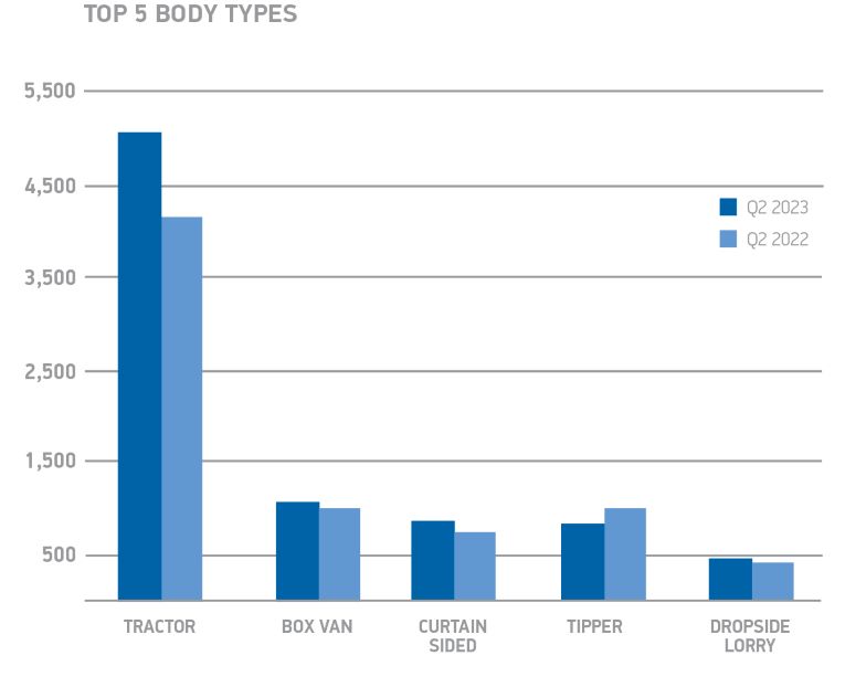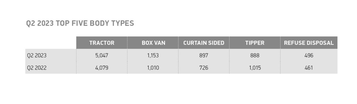 El crecimiento estuvo impulsado principalmente por las matriculaciones de camiones articulados, que aumentaron un 23,3% hasta las 5.121 unidades, mientras que las entregas de camiones rígidos aumentaron un 12,5% hasta las 6.053. Eso refleja una mayor demanda en la mayoría de los segmentos de camiones, y los tractores continúan siendo los más populares con diferencia, con un aumento del 23,7 % a 5047 unidades y una participación de mercado del 45,2 %. Las matriculaciones de furgonetas crecieron un 14,2% hasta las 1.153 unidades, mientras que las entregas de furgonetas con cortinas y laterales abatibles aumentaron un 23,6% y un 7,6%. Los volquetes fueron el único segmento entre los cinco primeros que registró un descenso, con un descenso del -12,5 %.