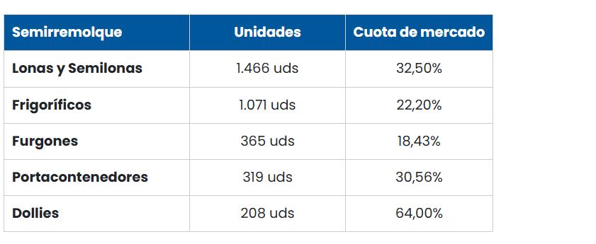 Por familias de producto, Lecitrailer ha vuelto a registrar cuotas de mercado destacadas, reforzando su posición como fabricante de referencia en los principales segmentos: