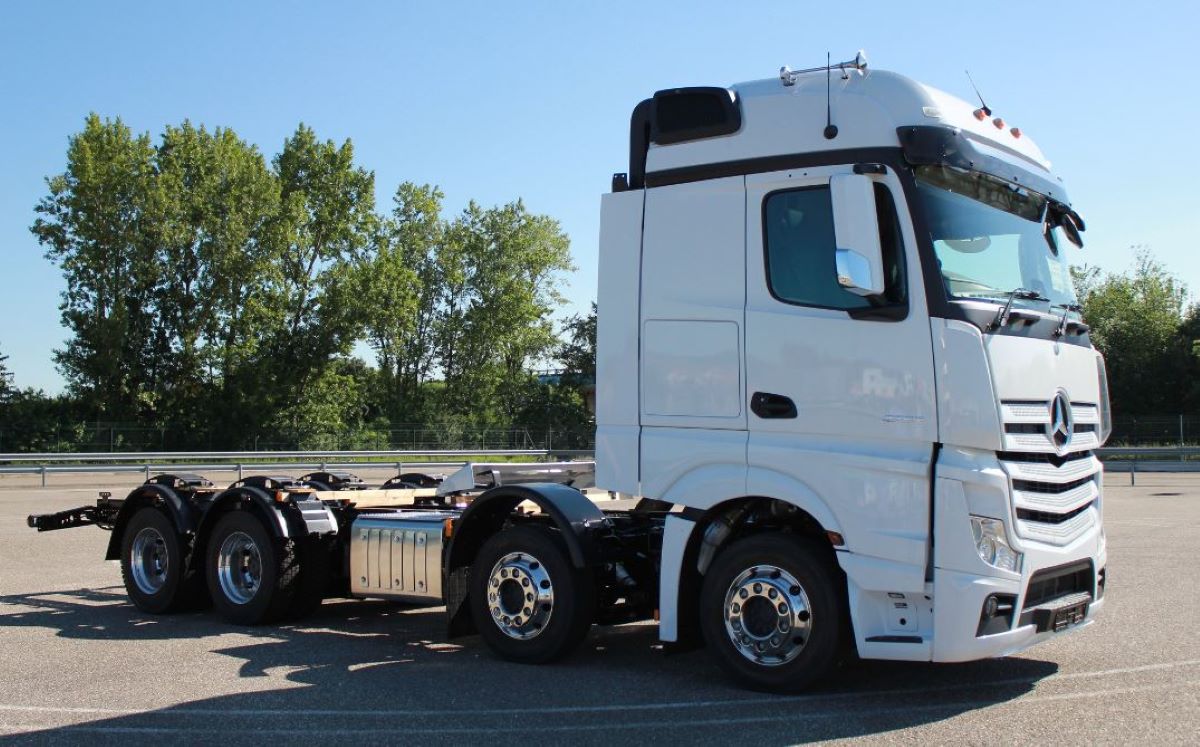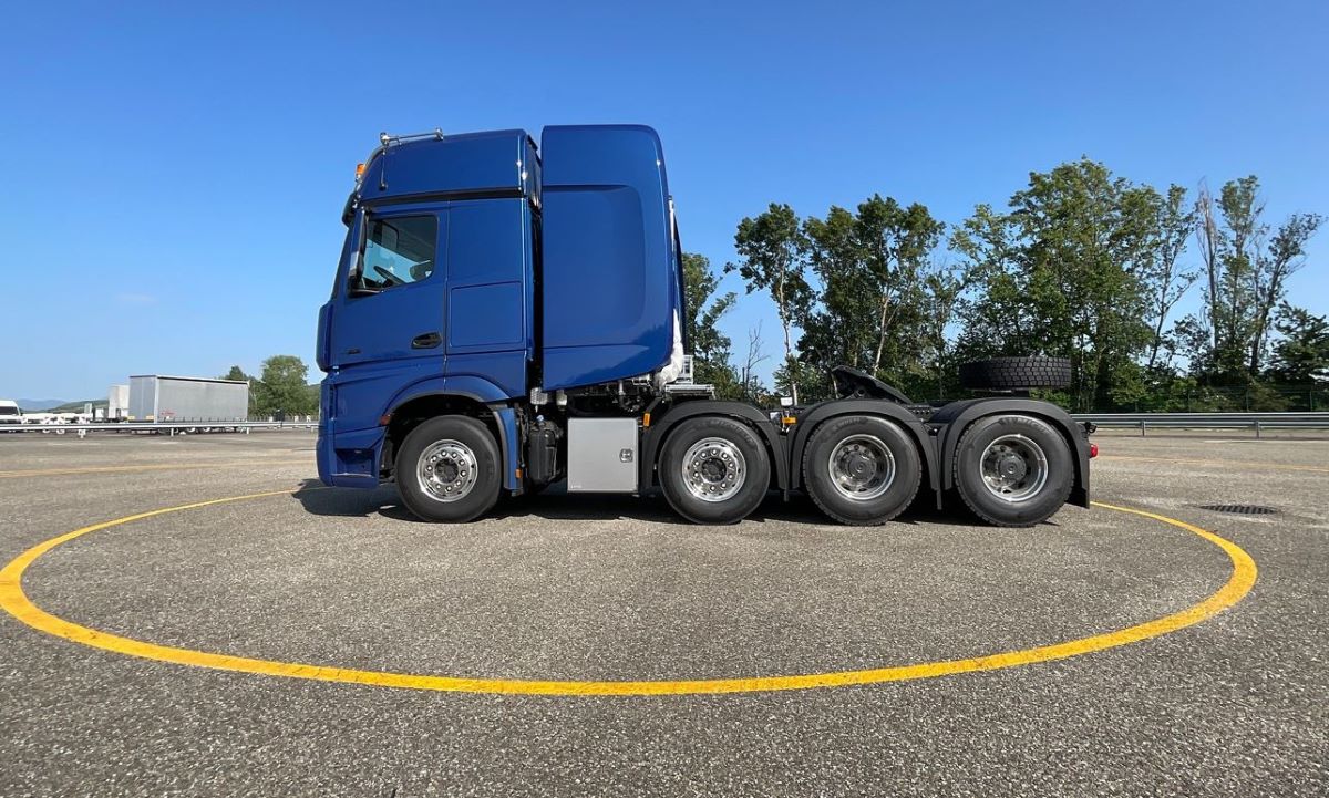 Una vez que el Actros salió de la línea de producción en Wörth, el camión original de 3 ejes se transformó en un SLT de tamaño completo de 4 ejes con dos ejes motrices en Molsheim y en TITAN, en Sulzbach, para poder utilizarlo como cabeza tractora para transporte pesado.
