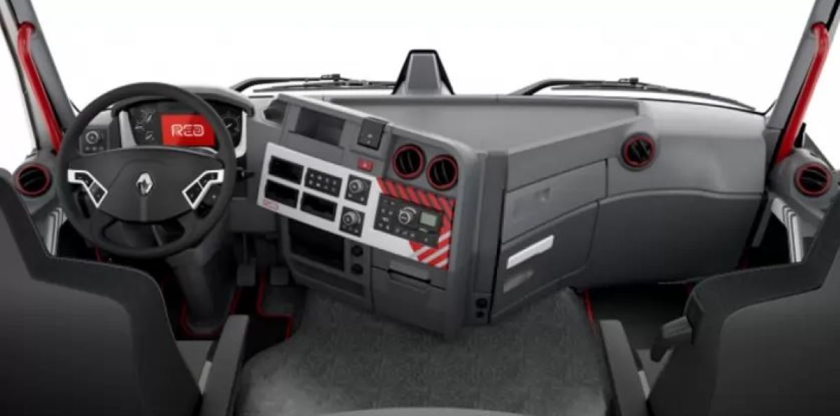 El Renault Trucks T Red destaca por sus acabados premium, desarrollados específicamente por el equipo de diseño del fabricante e implementados en el corazón de la marca en la planta de Bourg-en-Bresse. La carrocería combina el color gris y el rojo característico de la marca del rombo. Los diseñadores han trabajado en un estilo asimétrico y han incluido en los carenados laterales del vehículo, líneas gráficas dinámicas que evocan al nuevo logotipo de Renault Trucks.