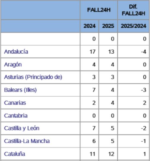 Por comunidades autónomas, Andalucía es la Comunidad que mayor número de fallecidos registra este mes de noviembre, con 13 personas fallecidas, a pesar de haber reducido la cifra en 4 personas con respecto al mes anterior, y Navarra y La Rioja las que han experimentado un mayor incremento en la siniestralidad con 3 fallecidos más con respecto al mismo mes de 2024.