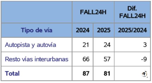 En esta ocasión descienden los fallecidos en carreteras convencionales, con 9 personas menos que en el mismo mes del año anterior, tal y como se puede ver en la tabla.