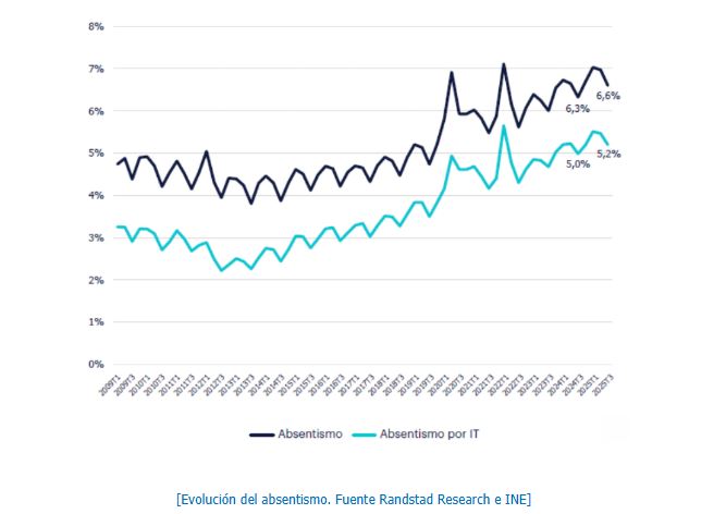 Randstad Research, el centro de estudios de Randstad, la empresa de talento en España y en el mundo, presenta el Informe de absentismo del tercer trimestre de 2025, el cual destaca que los niveles de absentismo de los empleados en sus puestos de trabajo han repuntado ligeramente durante el último ejercicio analizado y, un trimestre más, se mantienen en tasas elevadas.