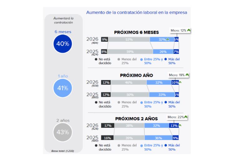 Entre las que prevén aumentar plantilla se intensifica la contratación versus 2025