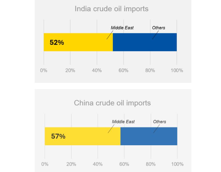 China está cada vez más expuesta a interrupciones en el suministro de petróleo crudo, ya que la mayor parte de sus importaciones provienen de Oriente Medio.