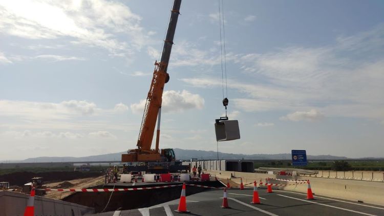 En la A-7, a la altura Quart de Poblet, se trabaja en la restitución del by pass sur tras el colapso del viaducto por la crecida en el barranco del Poyo. Una vez concluidos los trabajos de hormigonado, se avanza en la colocación de los 250 marcos que conformarán el desvío provisional que, con limitaciones de velocidad, permitirá recuperar la conexión con la A-3 y mejorar la movilidad metropolitana. El siguiente paso consistirá en la extensión de tierra y compactación y luego aglomerado y señalización. Una vez finalizado, se avanzará en la reconstrucción de viaducto.