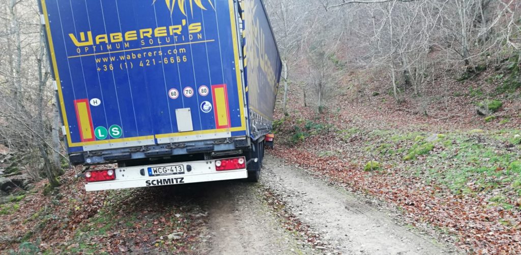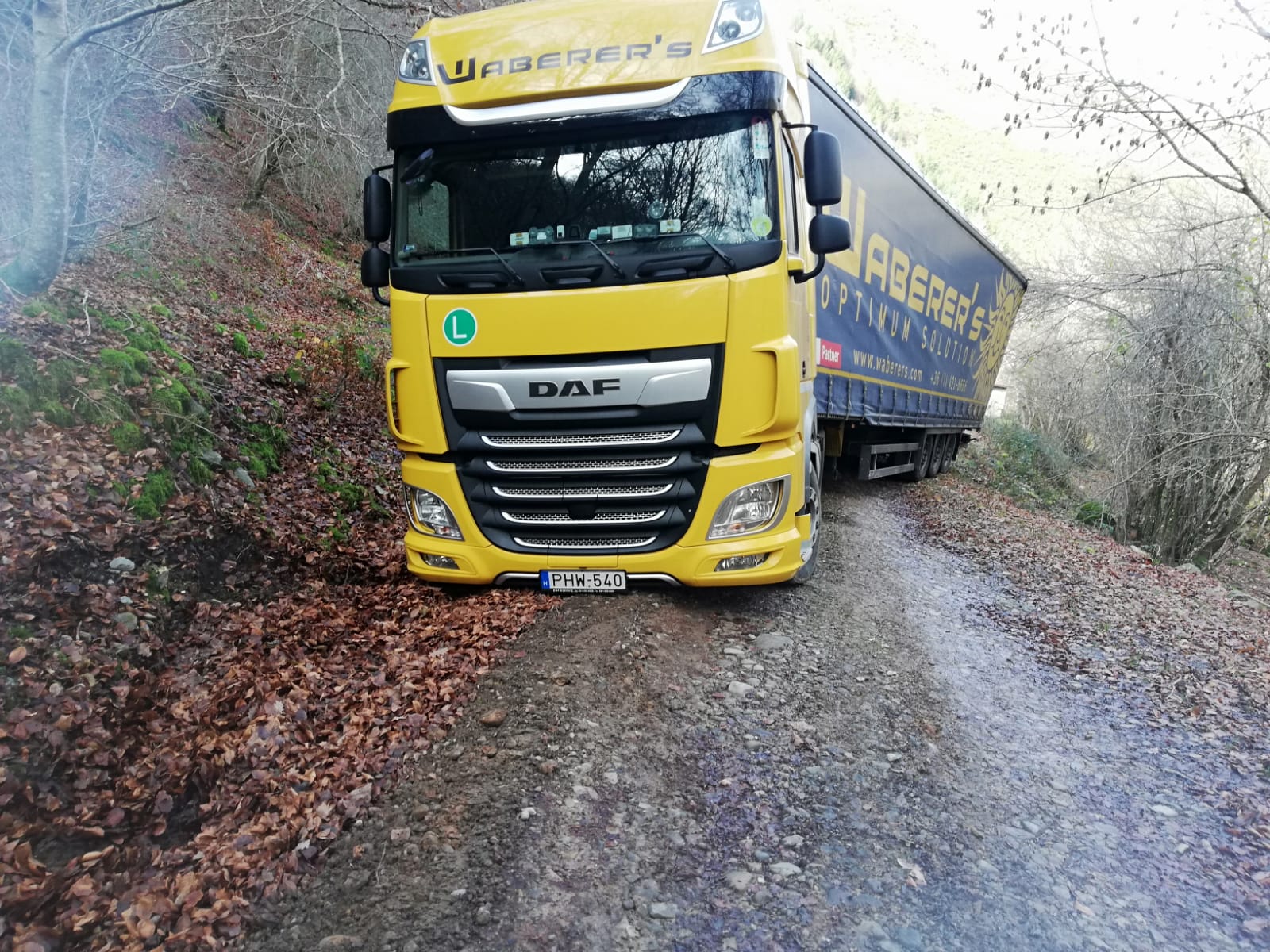 Un camión de la empresa de transportes húngara Waberer’s, se ha perdido en un camino de Lugar del Río en La Rioja, el camionero llevaba varias horas despistado, sin saber donde se había metido. El camión quedó atravesado en el camino y la cabeza tractora atascada en la cuneta, como se puede comprobar por las fotografías publicadas en el periódico NueveCuatroUno.