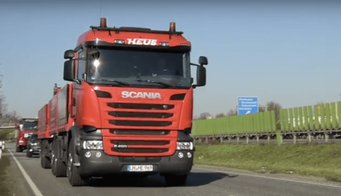 Con la competencia cut-throat, los camiones y los remolques rígidos de 3 ejes de Scania de HEUS se equipan de los dispositivos de seguridad de la carga de la propia construcción de la compañía. El uso de correas de trinquete convencionales llevaría mucho tiempo y en su lugar HEUS utiliza un sistema de columnas de acero fijo para estabilizar las cargas. La carga se racionaliza mediante el uso de montacargas de trabajo pesado que con cuatro horquillas que pueden levantar paletas de un peso de 1.2-2.2 toneladas. «Llevamos distancias cortas y los tiempos de carga y descarga deben ser cortos y estar disponibles en cualquier momento durante nuestra operación de turno único», dice Eufinger.