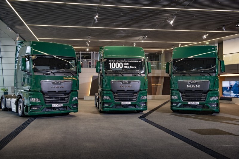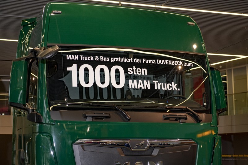 El Grupo Duvenbeck está activo en un total de ocho países y en 34 ubicaciones. Alrededor de 5.500 empleados trabajan para la empresa con el típico camión pintado de verde oscuro con una «D» roja y blanca. La flota del proveedor de logística de Bocholt ahora incluye alrededor de 1.500 camiones de última generación MAN ha entregado el camión número 1000 en total en el Truck Forum en Munich: » El excelente paquete completo, que consiste en un camión y la asociación con MAN, nos muestra a todos que juntos dimos el paso correcto. Por lo tanto, estamos encantados de haber podido recibir personalmente el camión número 1000 en MAN Truck & Bus en Múnich». . dice Thomas Duvenbeck, socio gerente de Duvenbeck, durante la entrega.