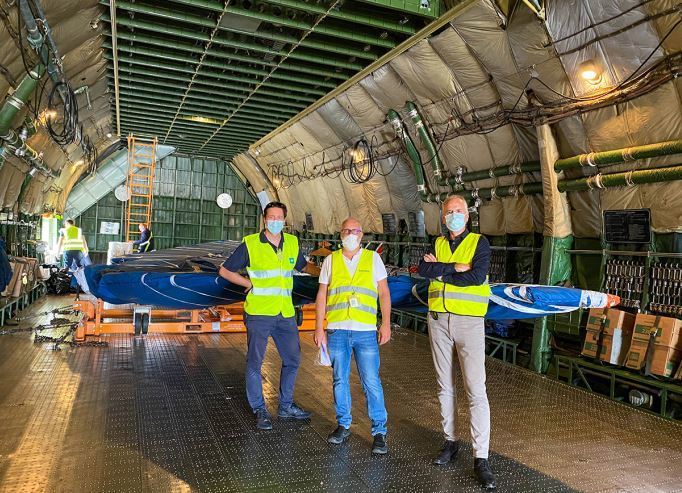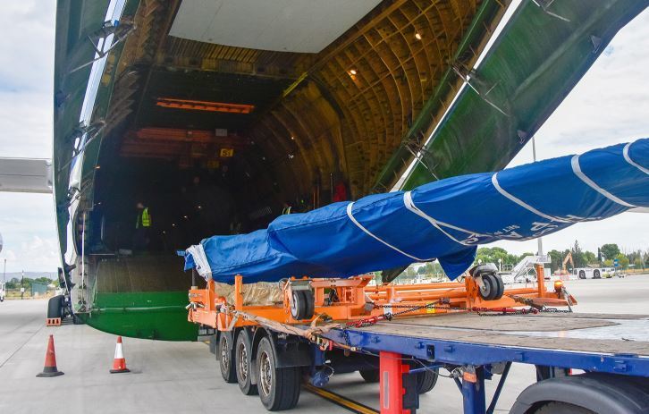 Para este transporte, Dachser ASL Alemania fletó un avión Antonov 124, el cuarto avión más grande en capacidad y uno de los más utilizados para el transporte de piezas aeronáuticas en general.