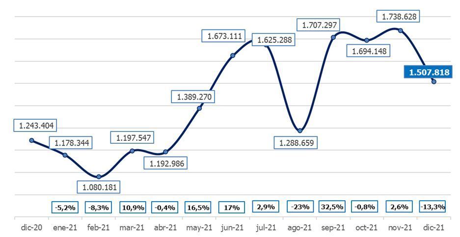 La recta final del año supone los niveles más altos de contratación temporal, alrededor de los 1,7 millones de firmas, aunque, ya en diciembre, el volumen se contrajo, afectado por el comienzo de la ola que sufrimos actualmente.