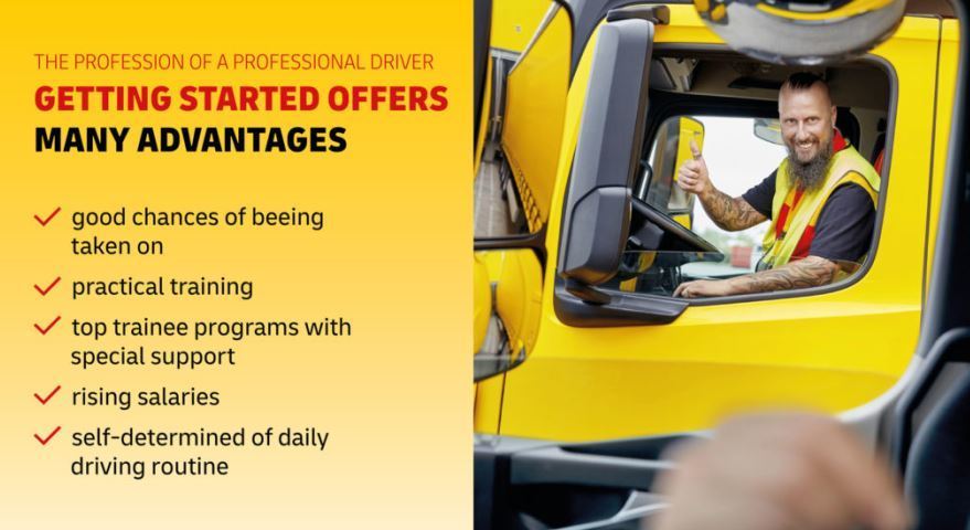 La profesión de conductor profesional trae muchas ventajas para los jóvenes talentos: además de buenas posibilidades de ser contratado, formación práctica con participación en los procedimientos de la oficina, programas de formación de alto nivel con apoyo especial, existe la previsión positiva de aumento de salarios debido a la escasez. de conductores Los conductores profesionales también pueden contar con una gran autodeterminación de su rutina diaria de manejo: ya sea escuchando audiolibros o podcasts, haciendo llamadas telefónicas con manos libres o reuniéndose con colegas en las áreas de descanso, la comunidad de conductores es una gran familia que toma el control. los caminos.