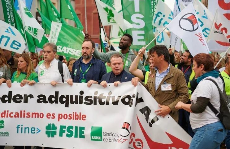 Redacción.- Más de 8.000 personas convocadas por nueve sindicatos independientes, demandaron hoy en las calles de Madrid un incremento de los salarios con cláusulas que garanticen el poder adquisitivo, bajo el lema #RecuperarPoderAdquisitivoYA.