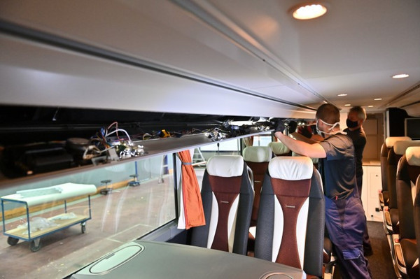 Los filtros están disponibles para el Mercedes-Benz Tourismo y para los autocares de piso alto y de doble piso de Setra. Todos los vehículos nuevos ya los llevan de serie. Para los operadores de autobuses que han suscrito un contrato de servicio con OMNIplus, los filtros activos se instalan automáticamente en cualquier cita de mantenimiento periódico. Los filtros activos se colocan en el sistema de climatización del techo, en las rejillas de recirculación de aire en el interior del vehículo y en la caja del sistema de climatización delantero de los autocares Mercedes-Benz y Setra.