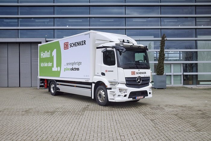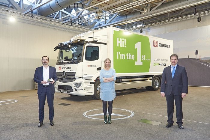 El vehículo fue recibido por Cyrille Bonjean, Executive Vice President, Head of Land Transport Europe en DB Schenker y Wolfgang Janda, Executive Vice President, Head of Network & Line Haul Management en DB Schenker. DB Schenker utiliza los eActros para transportar envíos paletizados en el área de Leipzig.
