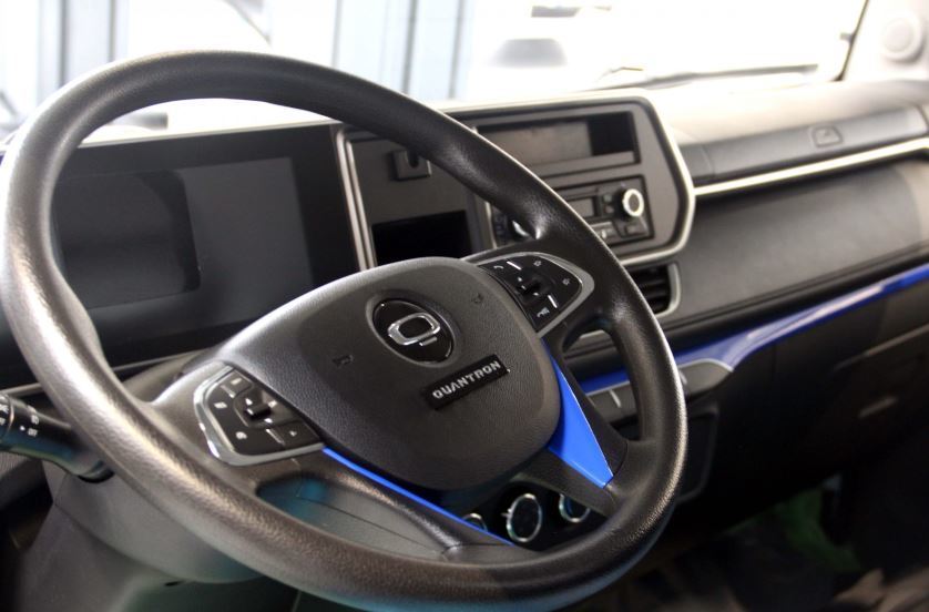 Entre las otras novedades de la gama QUANTRON figuran el camión pesado completamente eléctrico Q-Heavy Truck QUANTRON QHD BEV 50-280, semirremolque 4×2 basado en el DAF CF Space Cab. El vehículo de emisión cero convence por su escaso ruido y, en consecuencia, una conducción particularmente agradable, una autonomía de hasta 220 km y la potencia máxima de su motor de 350 kW. La batería de 280 kWh queda en 6,5 h plenamente cargada.