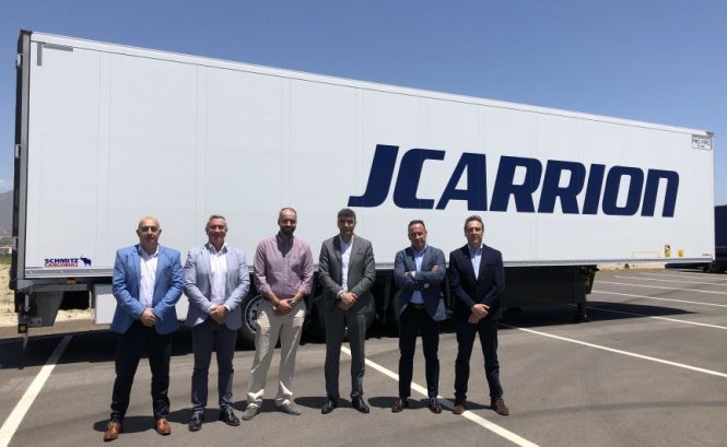 Redacción.- La empresa especialista en transporte nacional e internacional de mercancía a temperatura controlada o ambiente Transportes JCARRION, que tiene su sede centrala en la localidad almeriense de Huércal de Almeria, acaba de incorporar a su flota de vehículos 200 semirremolques frigoríficos S.KO COOL SMART de Schmitz Cargobull en un plan estratégico de crecimiento que compromete hasta 405 unidades.
