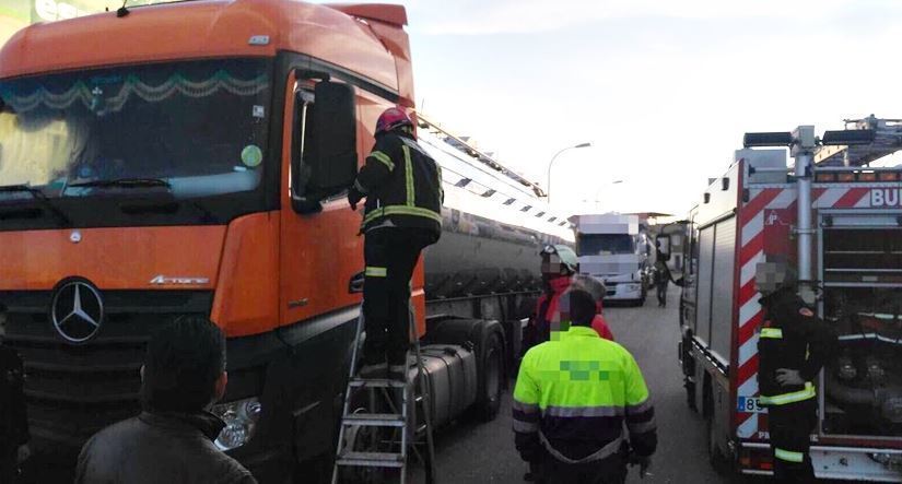 Fue entonces cuando se dio aviso al 112 y se presentaron en el lugar de los hechos efectivos de la Policía Local de Villarrobledo, miembros del SEPEI y los servicios médicos. Rota la ventanilla del camión por los bomberos, el ciudadano búlgaro fue trasladado en una UVI Móvil al Hospital de Villarrobledo para posteriormente ser derivado al Hospital General de Albacete.