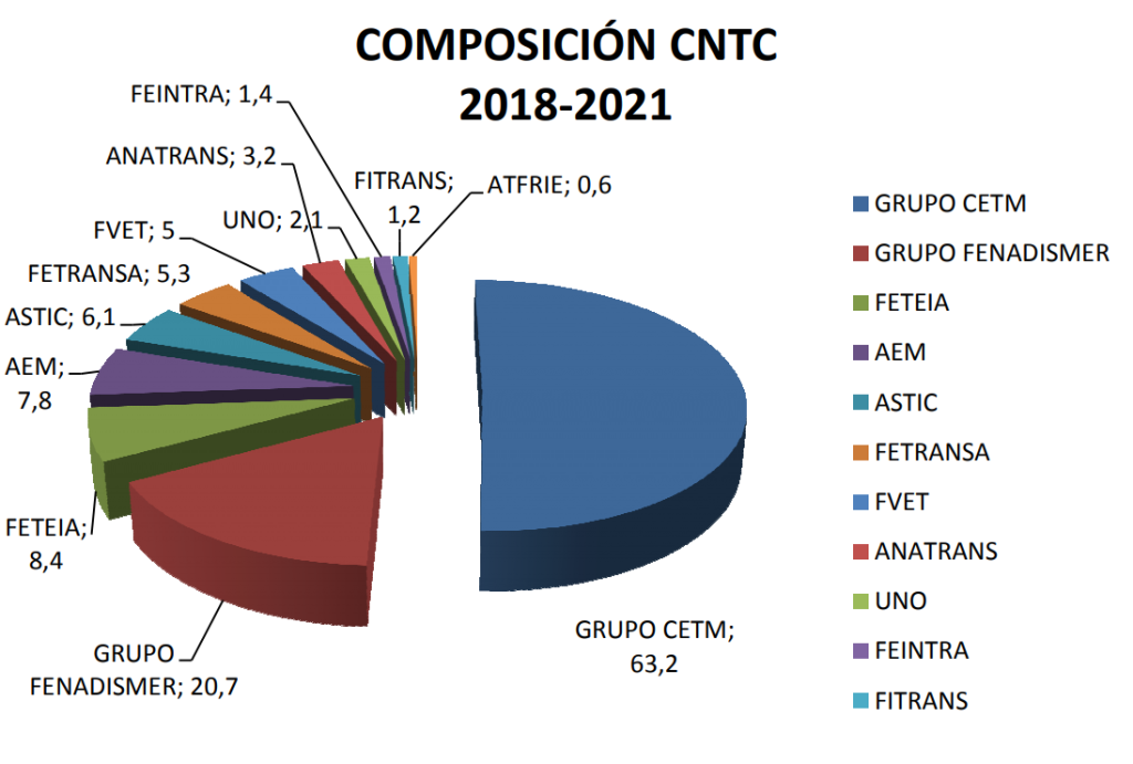 En la sección de mercancías por carretera, que estará compuesta por 15 organizaciones, la Confederación Española de Transporte de Mercancías (CETM) mantiene una mayoría holgada al lograr aumentar su participación hasta los 63,2 votos sobre 125 del total del CNTC, lo que le otorga una representación de casi el 51%.